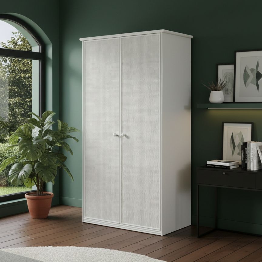 Quelle que soit la couleur dominante de votre chambre, la couleur de votre lit et vos tables de chevet, ou tout simplement quelque soit votre style de décoration, notre armoire deux portes s’intègrera facilement.