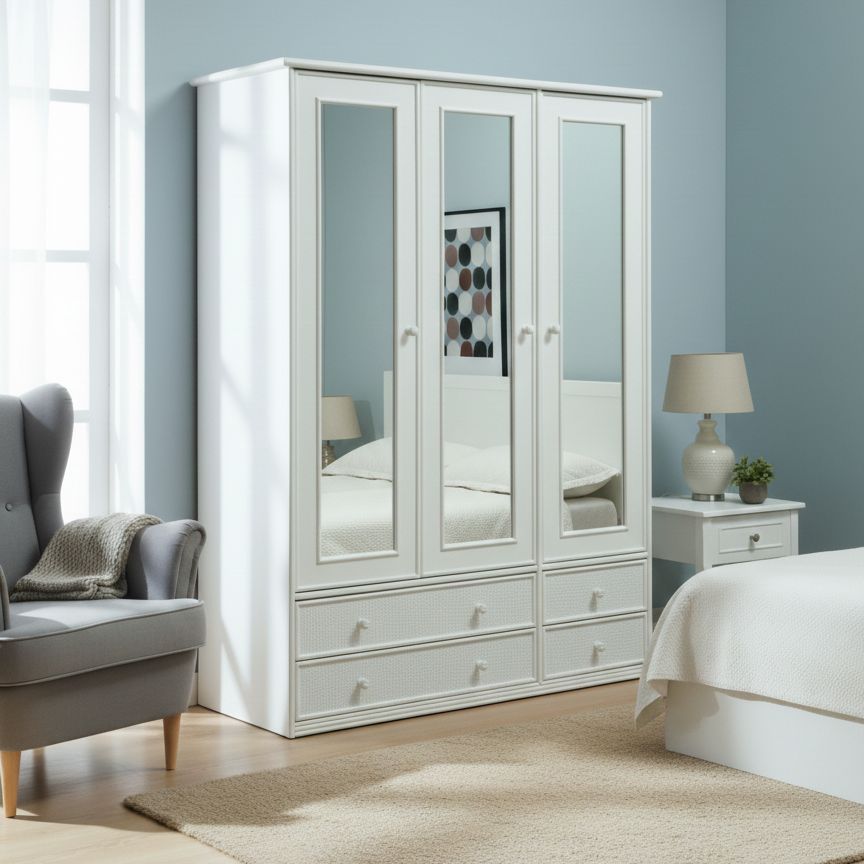 Grâce à cette armoire trois portes finis les soucis de rangement dans votre chambre! Vous trouverez à tout moment à votre disposition ce dont vous avez besoin.