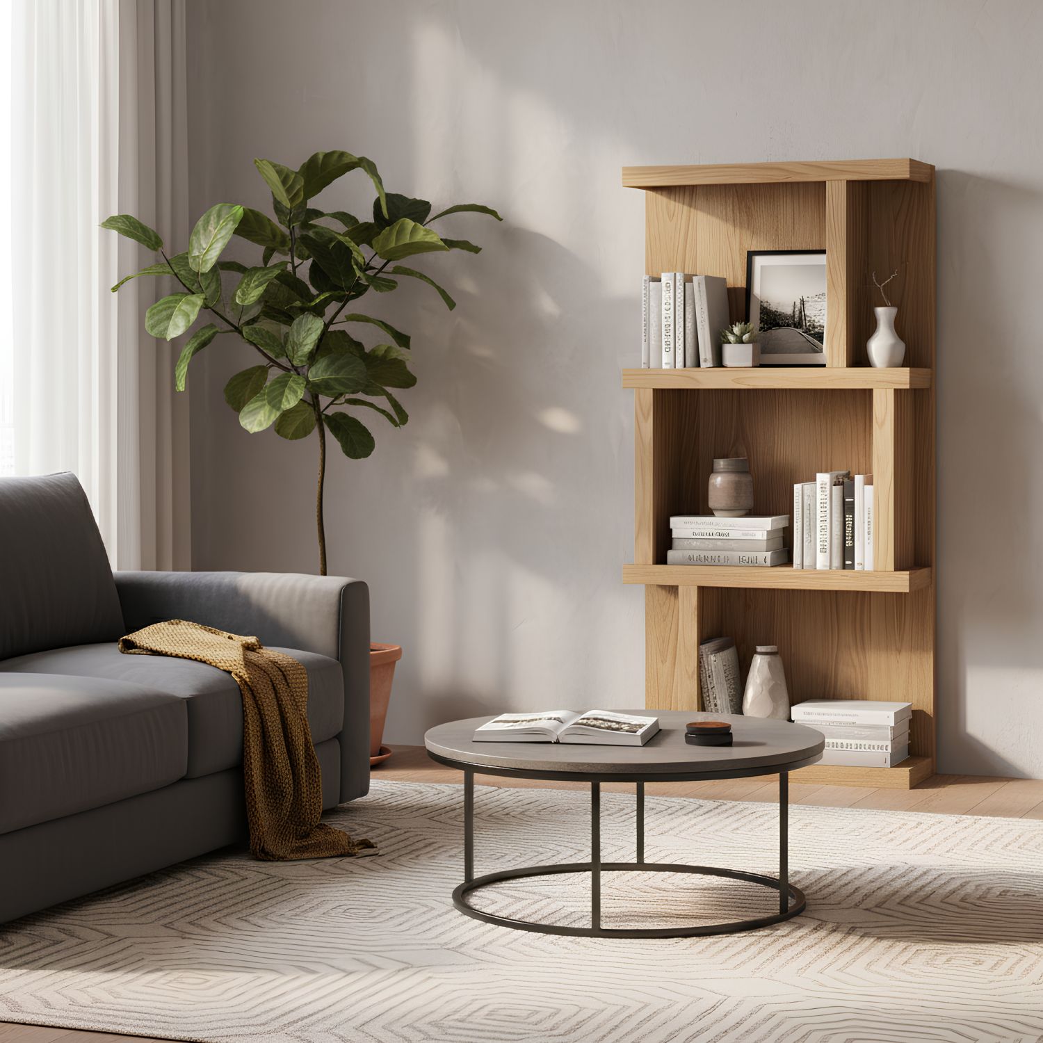Si vous recherchez un meuble bibliothèque avec plus d’espace de rangement, explorez cette grande bibliothèque en noyer mesurant 126 cm de largeur et 197 cm de hauteur.