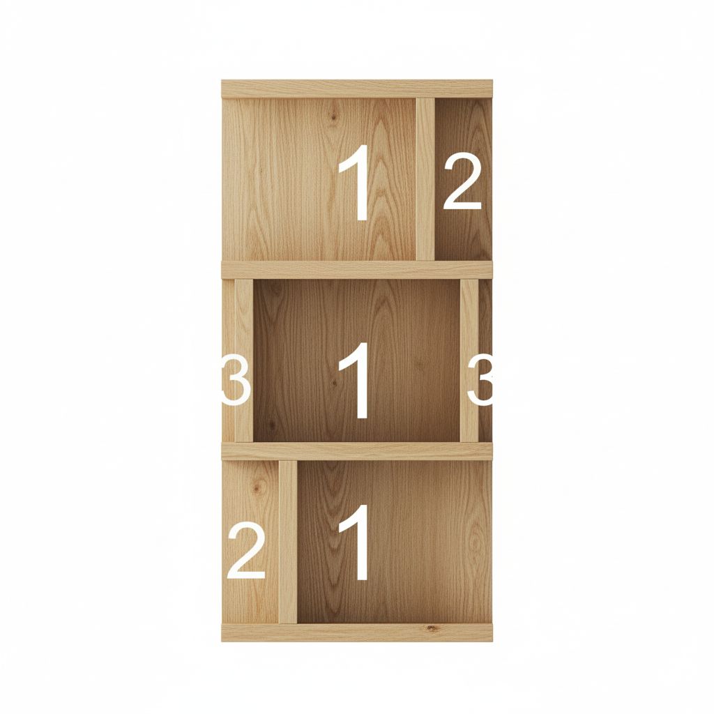 Avec sa largeur de 60 cm, elle occupe peu d’espace au sol, ce qui la rend idéale pour divers environnements. Sa faible profondeur de 26 cm lui permet de se glisser facilement dans un couloir ou une entrée sans encombrer. Les différentes niches, aux largeurs variées, sont parfaites pour accueillir vos livres, vinyles ou objets décoratifs préférés, tout en apportant une touche d’élégance à votre intérieur.