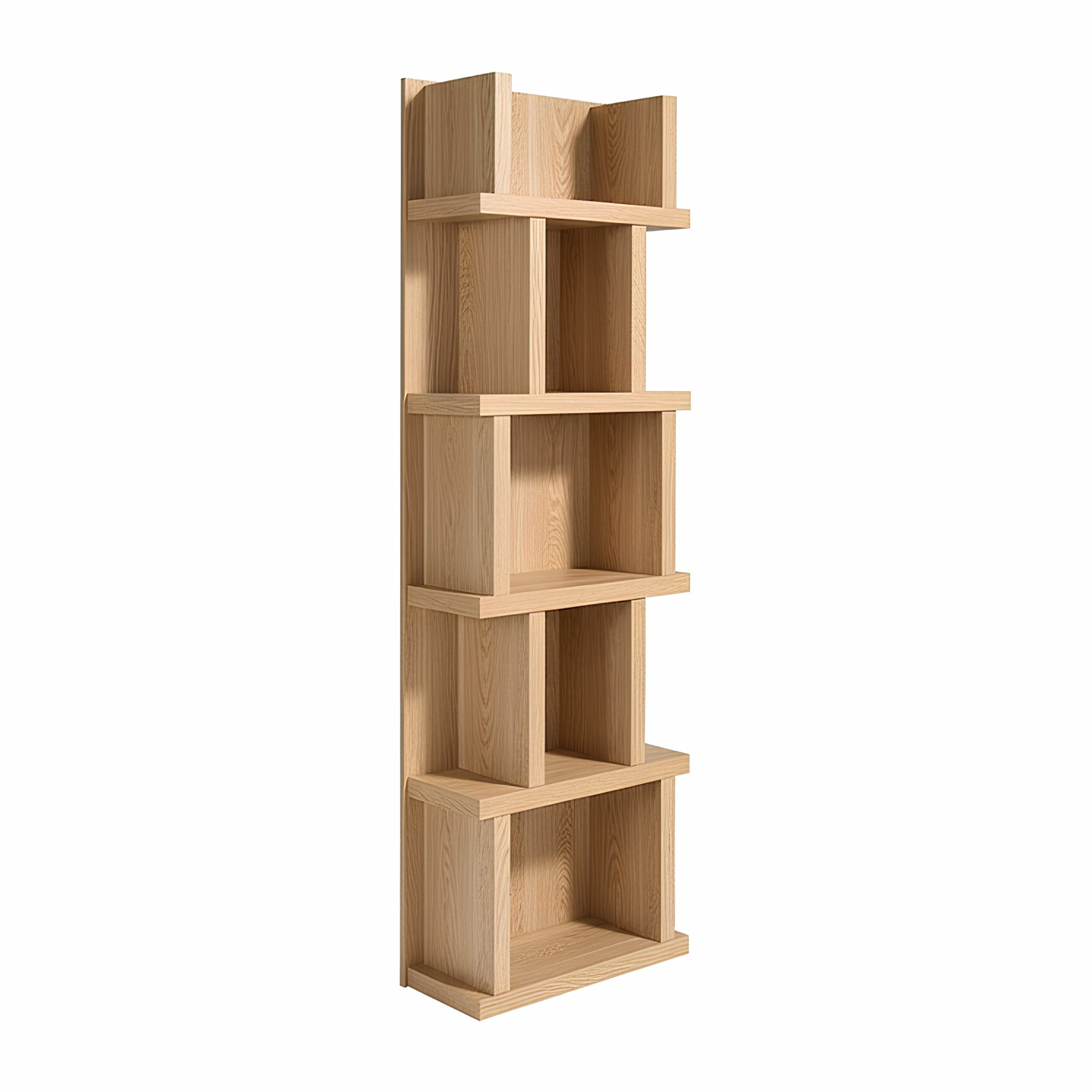 Avec ses lignes audacieuses et son format élancé, cette bibliothèque colonne design en chêne naturel est bien plus qu’un simple meuble de rangement : c’est une véritable pièce décorative.