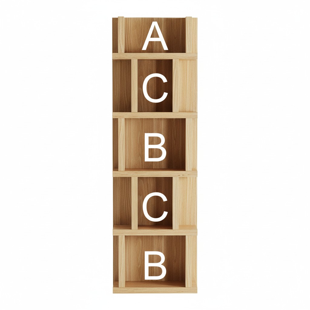 Cette bibliothèque colonne s’intègre facilement dans les espaces restreints grâce à son format étroit et vertical. Ses 5 niveaux et ses 15 compartiments de tailles variées permettent de ranger livres, objets décoratifs, plantes ou cadres photo tout en conservant une allure légère.