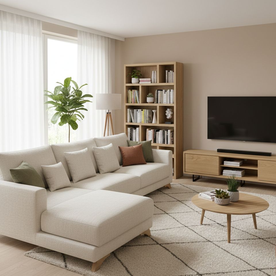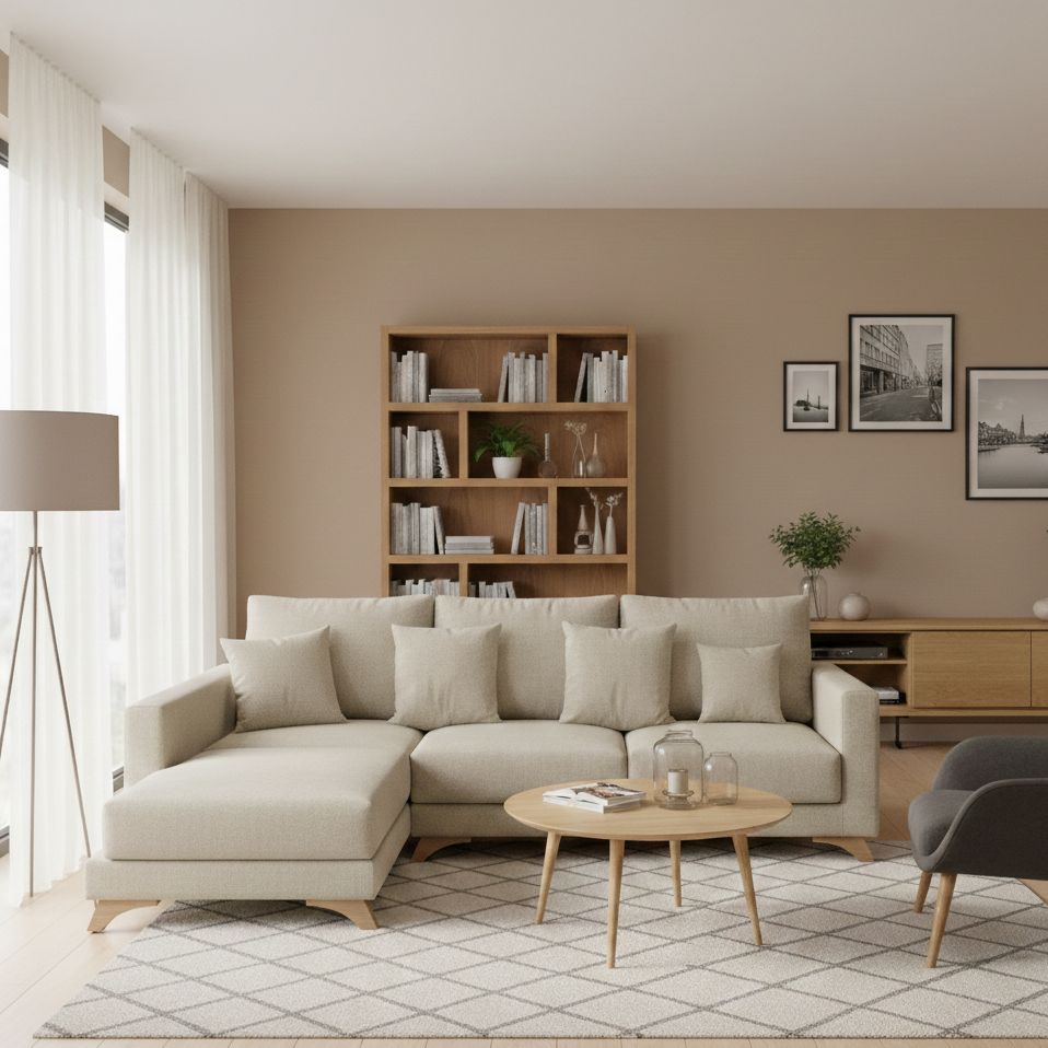 Un canapé d’angle en tissu et bois haut de gamme