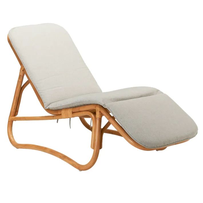 Le rotin est la matière idéale pour une chaise longue, puisque c’est l’une des rares qui permet de créer ces formes arrondies.