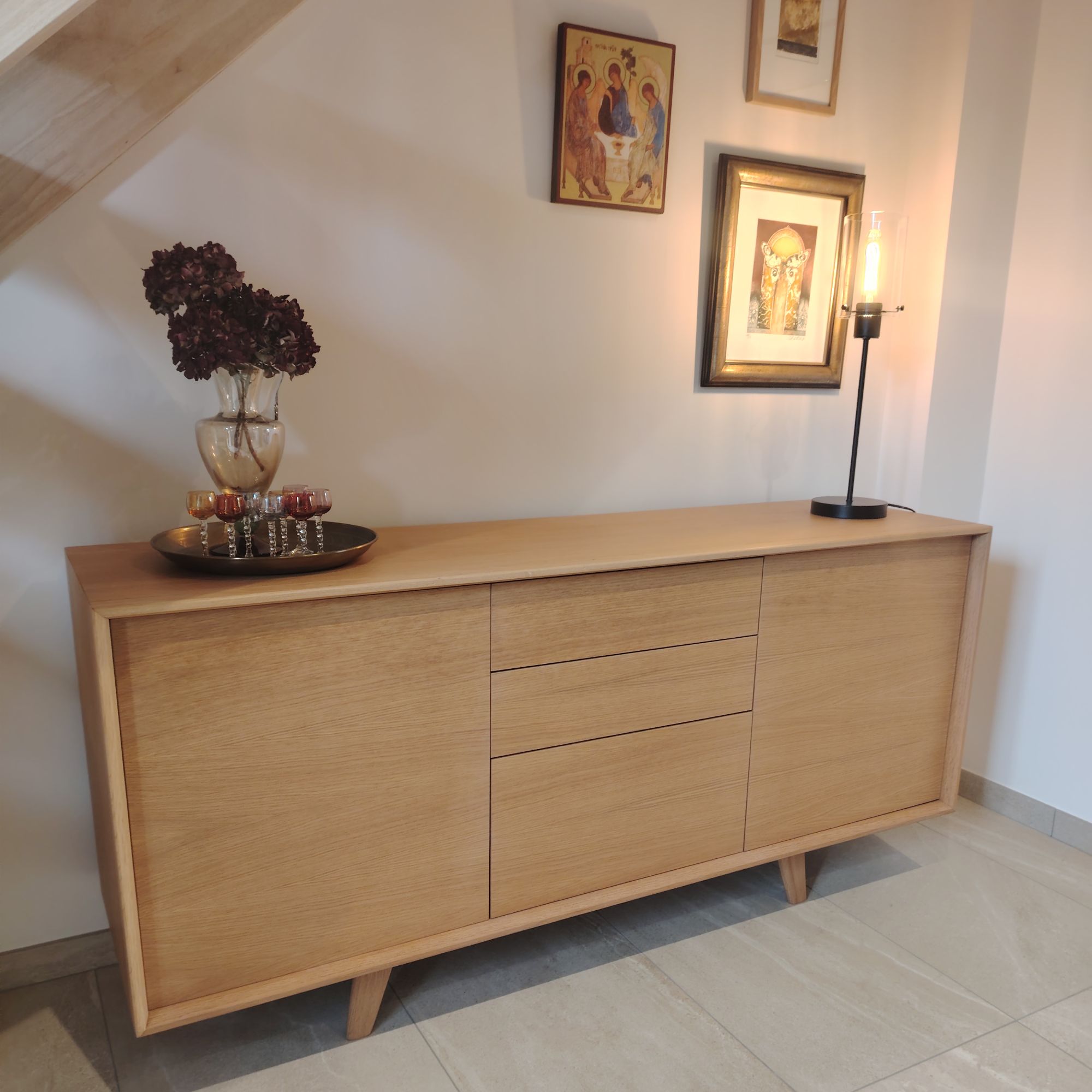 Première chose importante en fonction de vos besoins, choisir les dimensions de votre buffet. Ce buffet design mesure 160 cm de long, mais vous pouvez très bien choisir le même modèle de buffet design scandinave en 180 cm.