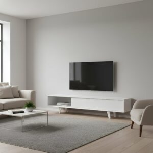 Meuble tv scandinave 120 cm 1 porte 2 niches Dimensions: Largeur 120 cm x Profondeur 40 cm x Hauteur 45 cm Couleur: au choix Disponibilités: 4 à 6 semaines