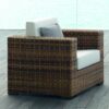 Canapé en résine tressée 3 places marron Dimensions: Largeur 210 cm x Profondeur 90 cm x Hauteur 86 cm Tissu: au choix Délais de livraison: 2 à 3 semaines