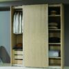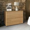 Le chevet bois est proposé en version « table de chevet 3 tiroirs » ou en version 1 tiroir avec niche de rangement. Le tiroir de la table de chevet, comme les tiroirs du chiffonnier bois, sont montés sur rail métalliques avec système d’ouverture Push. Cette table de chevet est réalisée en placage chêne de qualité supérieure.