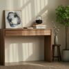 Console noyer 120 cm avec 2 tiroirs Placage en noyer naturel Dimensions : Largeur 120 cm × profondeur 30 cm × hauteur 80 cm Fabrication : Espagne — Livrée montée Disponibilités : 4 à 6 semaines