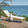 Bain de soleil taupe en résine tressée Daisy Couleur: taupe Coussins: écru ou taupe Dimensions: longueur 190 cm x largeur 71 cm x hauteur 86 cm. Hauteur d'assise 45 cm Délais de livraison: 3 à 4 semaines