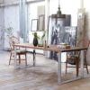 Table de salle à manger en bois vieilli et pieds chromés. Dimensions premier modèle: Longueur 140 cm x largeur 90 cm x hauteur 77 cm Dimensions second modèle: Longueur 160 cm x largeur 90 cm x hauteur 77 cm Dimensions troisième modèle: Longueur 180 cm x largeur 100 cm x hauteur 77 cm Dimensions quatrième modèle: Longueur 200 cm x largeur 100 cm x hauteur 77 cm Couleur: au choix (nous consulter) Disponibilités: 4 à 6 semaines.
