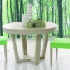 Table 120 cm avec rallonge intégrée ou séparée. Dimensions: Diamètre 122 cm x hauteur: 76 cm Trente couleurs au choix. Délais de livraison: 4 à 6 semaines.